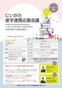 2025年10月15日(水)、新潟県総務部大学・私学振興課主催「にいがた産学連携応援会議in 学びと交流の場『SANKAKU』~大学の知から未来を創る!~」が、学びと交流の場「SANKAKU」で開催されました。