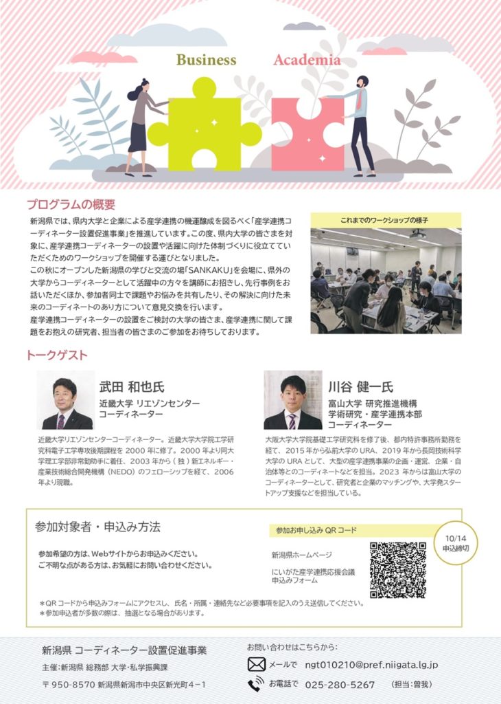 対象:主に新潟県内大学等の産学連携コーディネーター、産学連携ご担当者、教員など