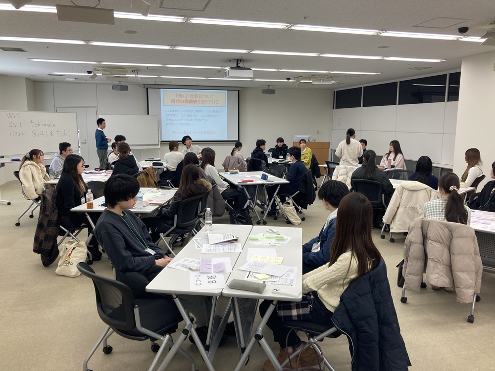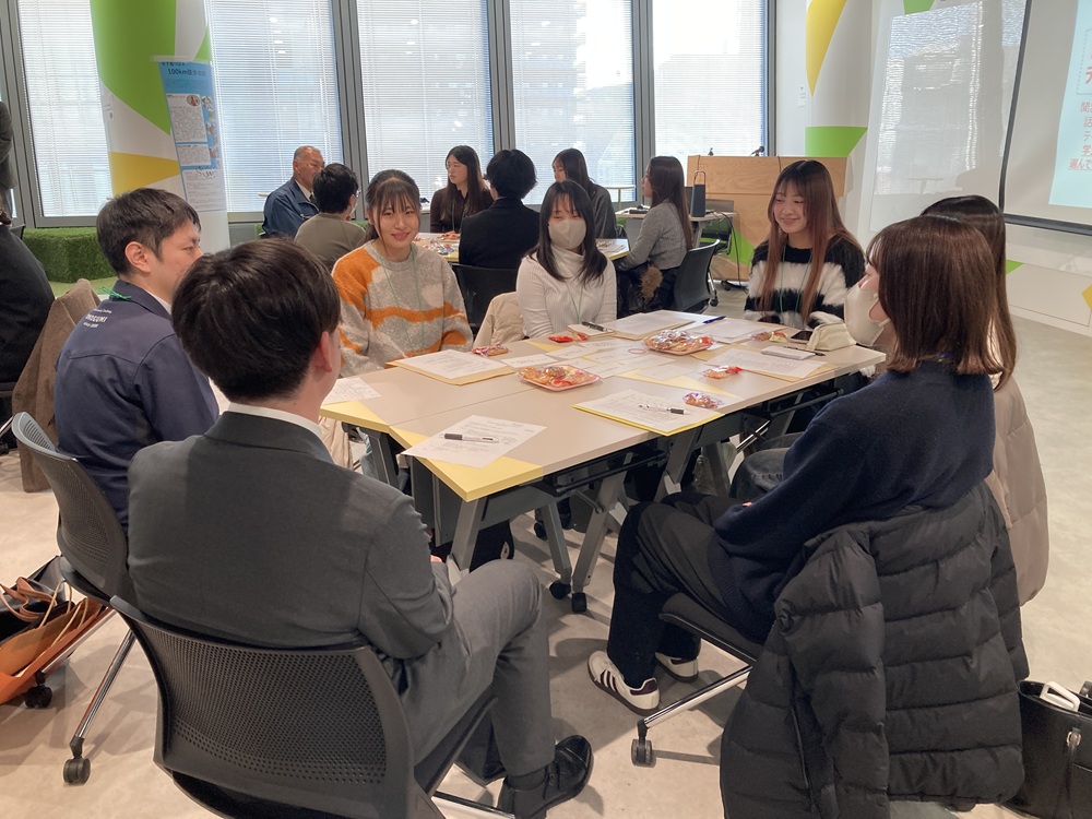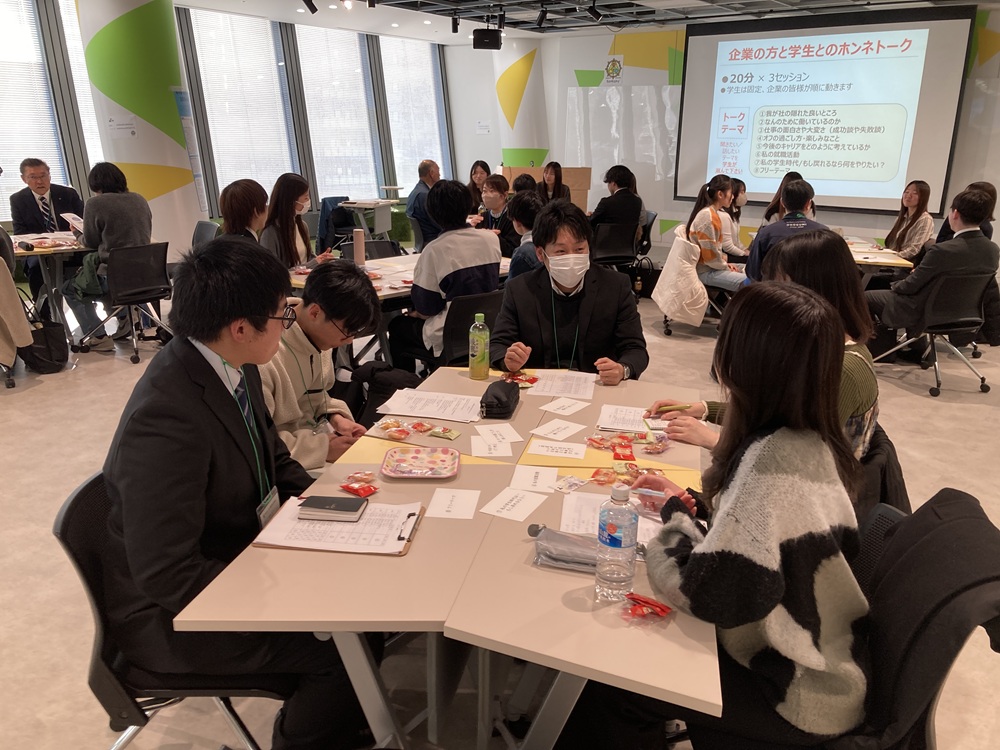 さらにその後は、各企業の人事担当者や若手社員の方々と「仕事の面白さや大変さ」「私の学生時代/もし戻れるなら何をしたい?」などのトークテーマについて、和気あいあいと語り合いました。